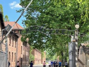 Author Terry Lee Marzell and her husband, Hal, toured Auschwitz, the most notorious of the World War II Nazi concentration camps, on their tour of Eastern Europe in 2025. Photo credit: Terry Lee Marzell