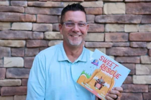 Alex’s book, entitled Sweet Rescue, is a story about a caterpillar named Hungry Joe. When the caterpillar falls into a pie, his sister, Becky Butterfly, spearheads a major rescue effort. Once he is safe, Hungry Joe declares that he’s still hungry. The tale was was inspired by Alex’s experience competing with his former students on the game show Play-Doh Squished. A former instructional aide at the school, Kayne Carter, illustrated the volume. Sweet Rescue, recommended for children between the ages of 3 and 6, can be purchased on amazon.com.