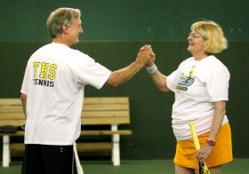 Often talented educators also distinguish themselves as public servants. This is true of Duane Pomeroy, a high school social studies teacher and tennis coach who served for a time as the acting mayor of his home town of Topeka in Shawnee County, Kansas. Duane is pictured here on the left, following a tennis match.