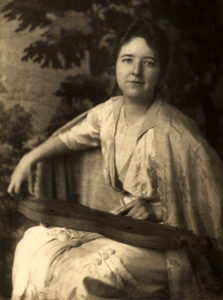 New Jersey English teacher Ethel De Long Zande helped establish a settlement school in rural Appalachia to educate mountain children. She is seen here with a mountain dulcimer. Photo credit: Pine Mountain Settlement House Collections.