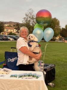 Author Terry Lee Marzell and her fur baby, Kurby, will make an author appearance at this year’s Paws in the Park event at Vila Borba Dog Park in Chino Hills on Sat., Sept. 6, from 9:00-11:00 am. Photo credit: Hal Marzell